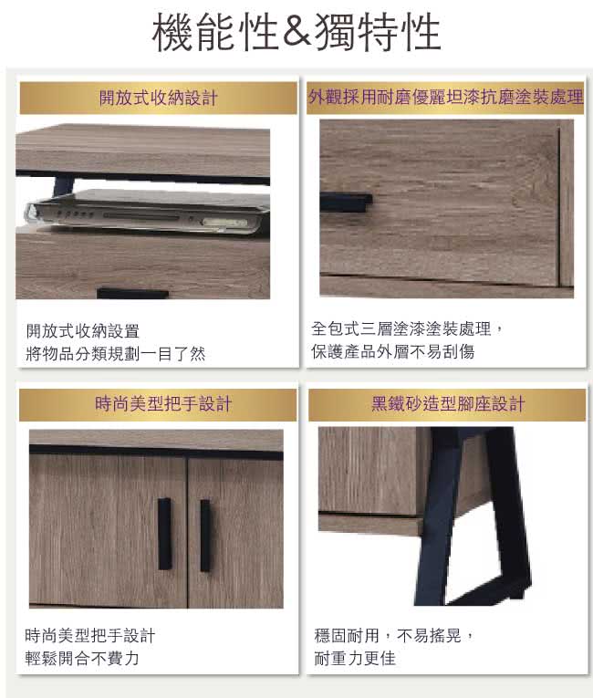 ★防蛀木心板+黑鐵砂腳座 五金滑軌結構+橡木紋色系二抽屜+開放式層格+二門櫃專人送到府服務,免組裝免運費 |